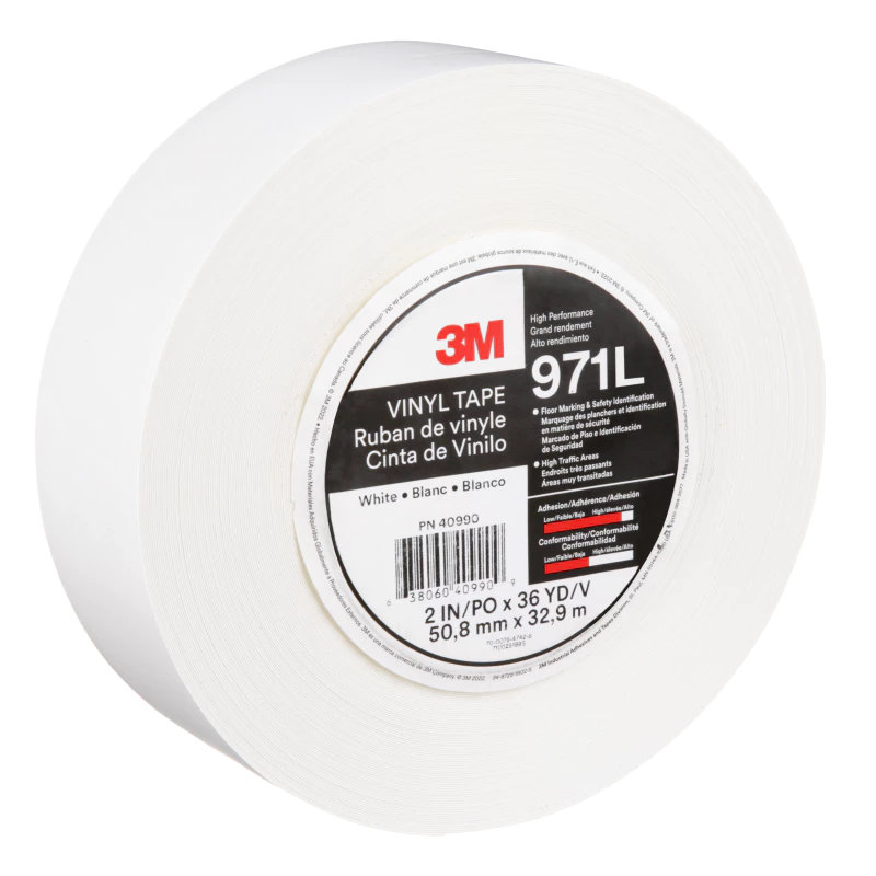 3M™ 울트라 듀러블 바닥 라인 테이프 971L, 흰색, 50.8 mm x 32.92 m 테이프는 다양한 표면에 적합한 제품으로, 다양한 산업에서 여러 용도에 사용됩니다.